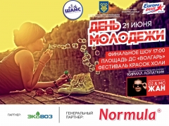 Апогеем Днямолодежив Тольятти станет грандиозное шоу на площади перед Дворцом Спорта «Волгарь». Здесь с 17:00 пройдет ФЕСТИВАЛЬ КРАСОК, а также праздничный концерт с участием лучших творческих коллективов Тольятти, Казани, Перми и Тюмени, с зажигательными конкурсами и ценными призами.