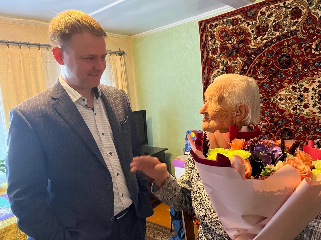 Денис Владимирович поблагодарил Зинаиду Михайловну за её вклад и пример, пожелав ей крепкого здоровья и долгих лет жизни.