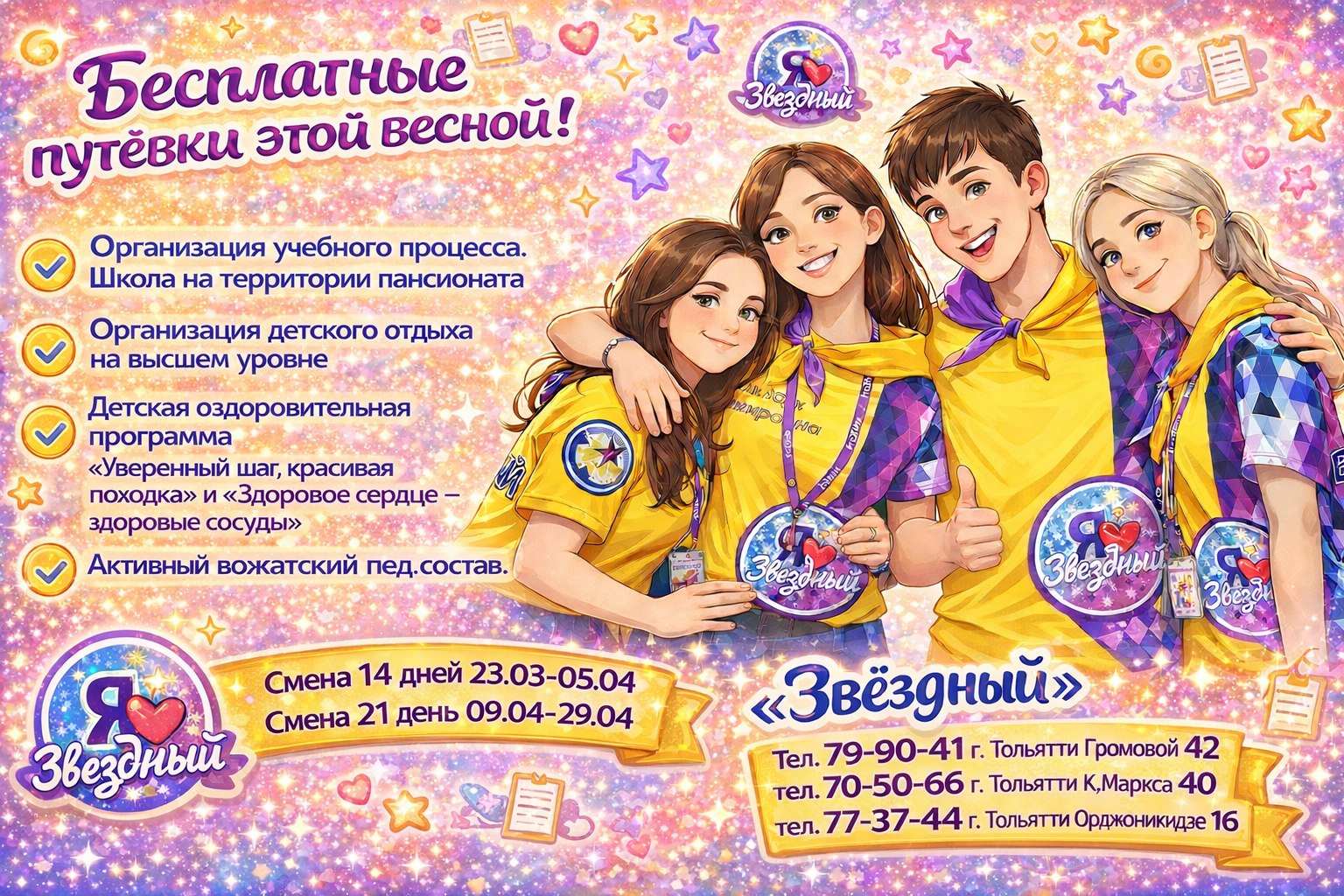 Тольяттинские организации отдыха детей и их оздоровления ждут ребят в возрасте с 6 до 17 лет (включительно) на бесплатные заезды: