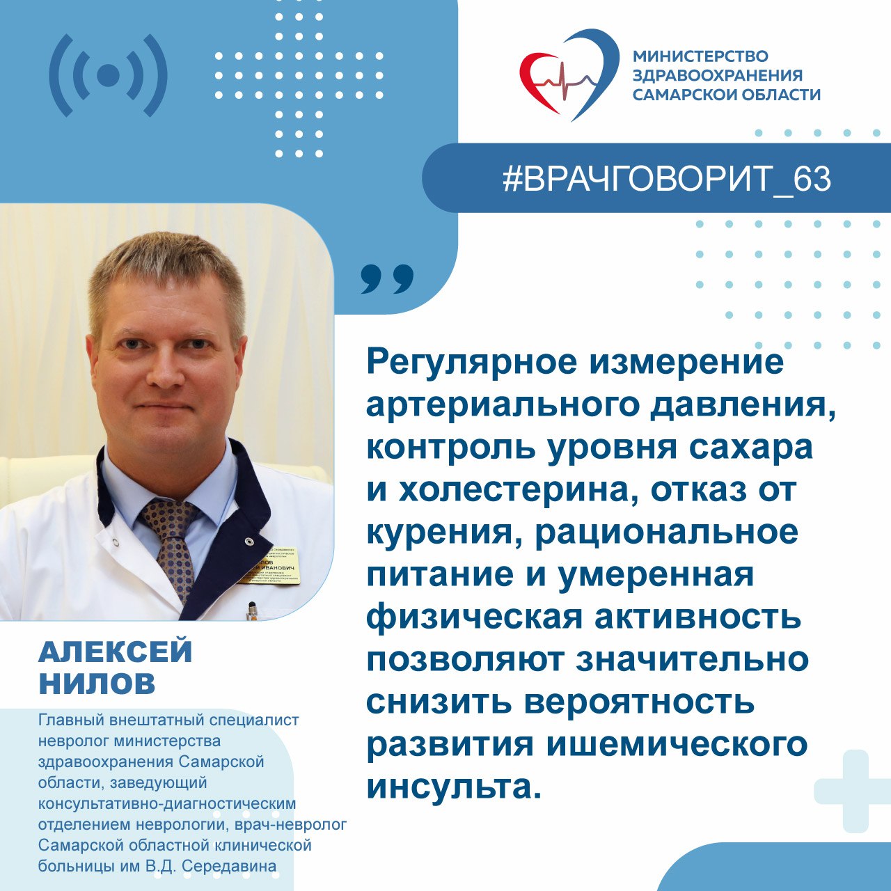Главный внештатный специалист невролог министерства здравоохранения Самарской области, заведующий консультативно-диагностическим отделением неврологии, врач-невролог Самарской областной клинической больницы им В.Д. Середавина Алексей Нилов: