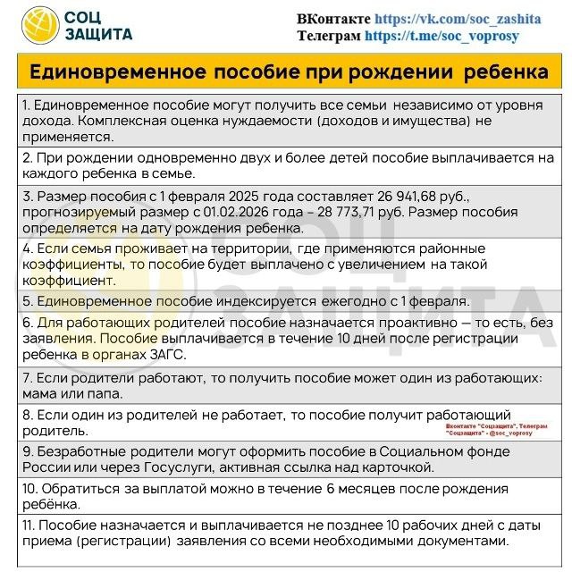 С 1 февраля 2026 года пособие будет проиндексировано и составит 28 450,45 рублей.