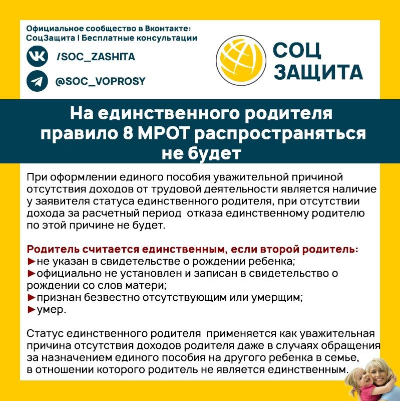 ???? Работодатель не может уволить по своей инициативе родителя, который является единственным кормильцем ребенка до 3 лет, воспитывает 3 и более детей в возрасте до 14 лет, а второй родитель не работает.