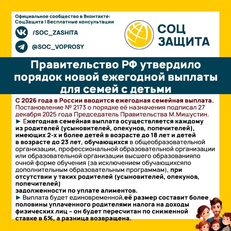 Это пособие для семей с двумя и более детьми с учетом нуждаемости и без подтверждения расходов. Оно связано с НДФЛ, но назначается Социальным фондом. Оформление — по заявлению с 1 июня 2026 года.