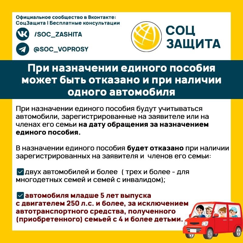 При назначении единого пособия проводится комплексная оценка нуждаемости семьи — в том числе, учитывается имущество на день обращения.