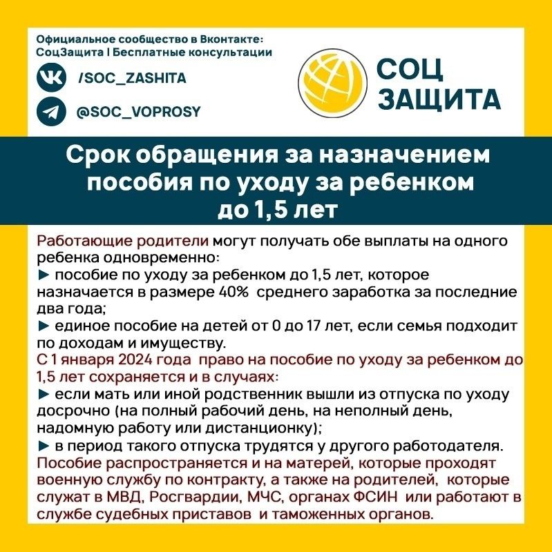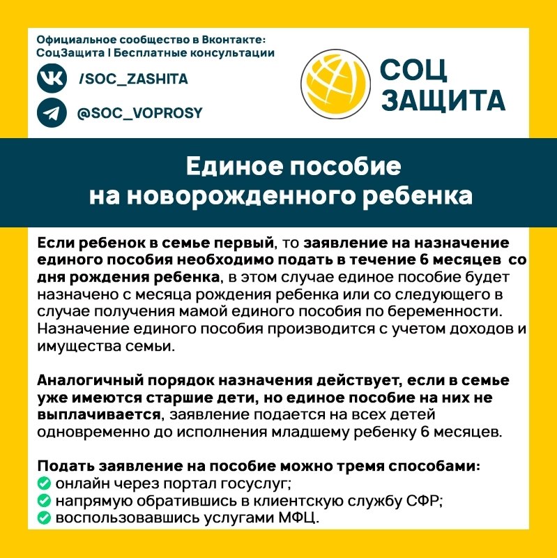 •Обратиться за выплатой можно в течение 6 месяцев после рождения ребёнка.