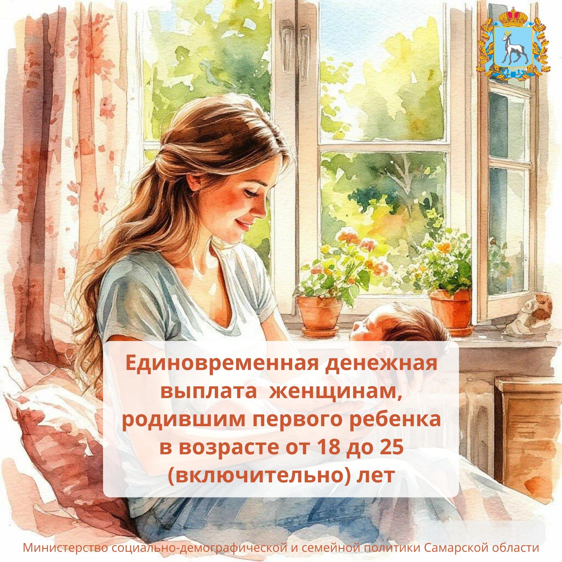 Единовременная денежная выплата женщинам, родившим первого ребенка в возрасте от 18 до 25 (включительно) лет.