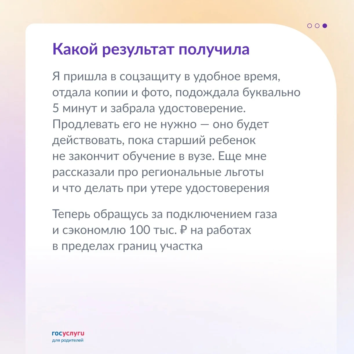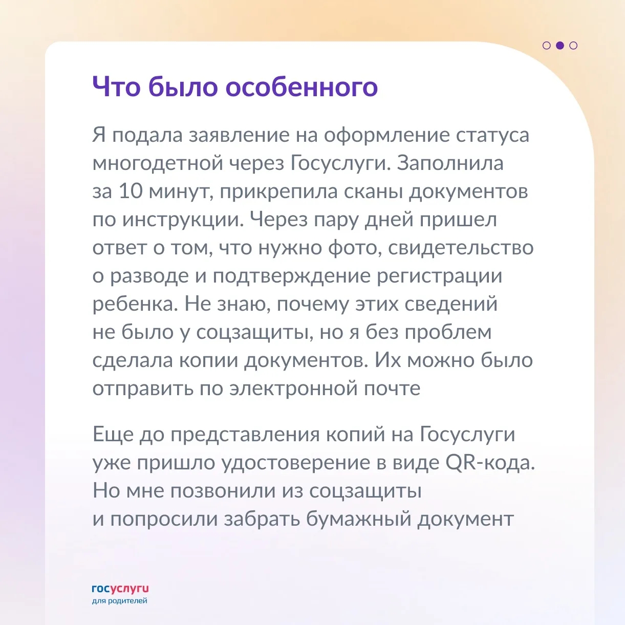 В 2025 году она попробовала оформить статус многодетной матери с помощью Госуслуг. Заявление удалось заполнить за 10 минут. На получение бумажного документа ушло еще 5 минут в соцзащите.