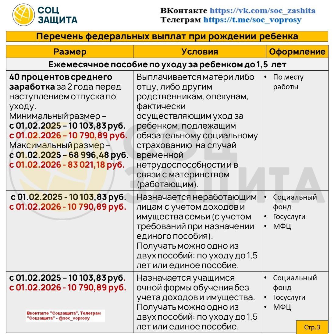 - Выплату из материнского капитала на ребенка в возрасте до 3 лет; - пособие по уходу за ребенком до 1,5 лет для работающих родителей; - ежемесячное пособие на ребенка военнослужащего, проходящего службу по призыву; - региональные выплаты.