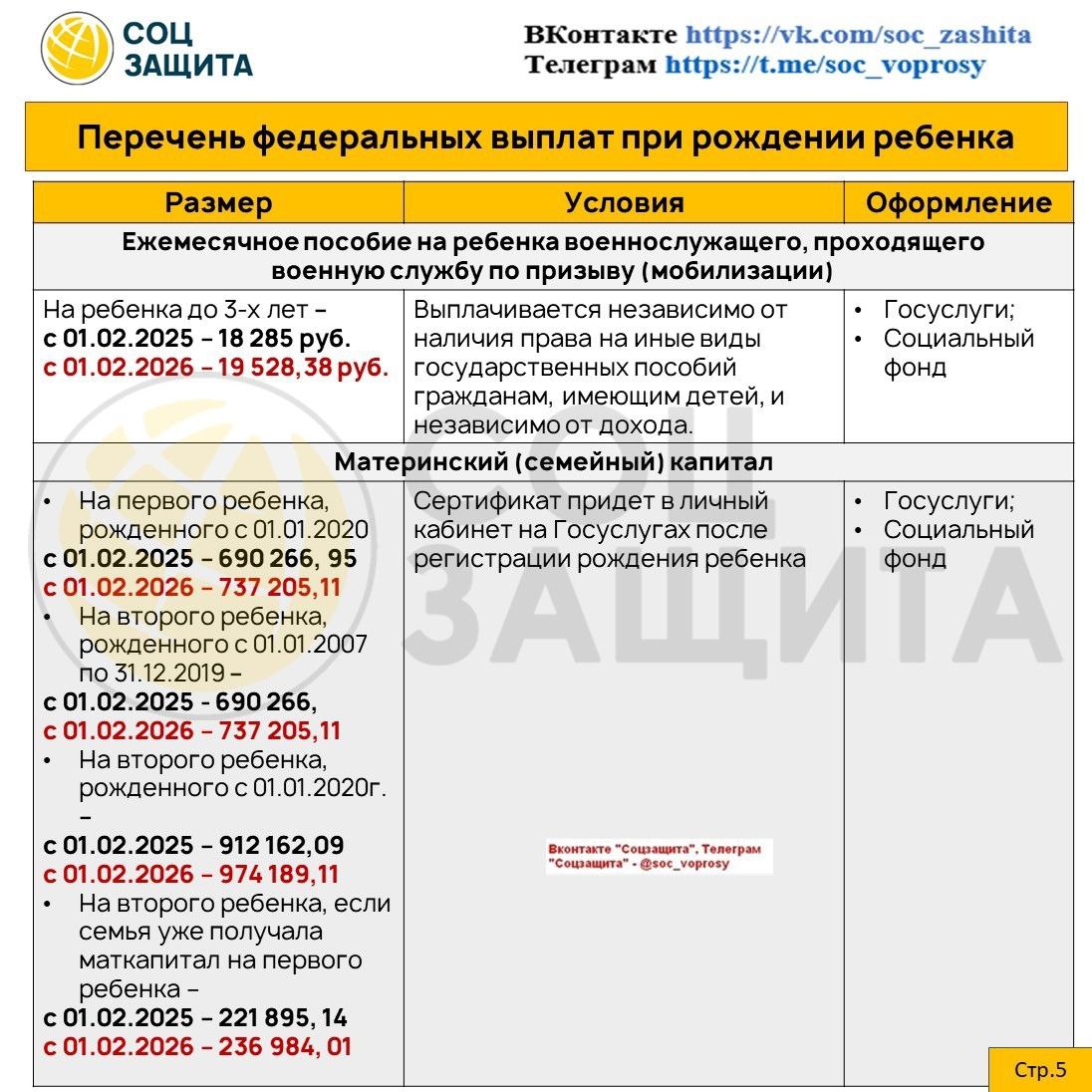 В карточке — размер маткапитала после индексации с 1 февраля 2026 года.