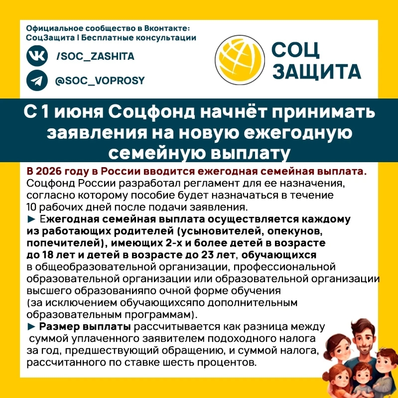 Новая ежегодная семейная выплата: приём заявлений стартует с 1 июня. Подписаться https://max.ru/soc_zashita