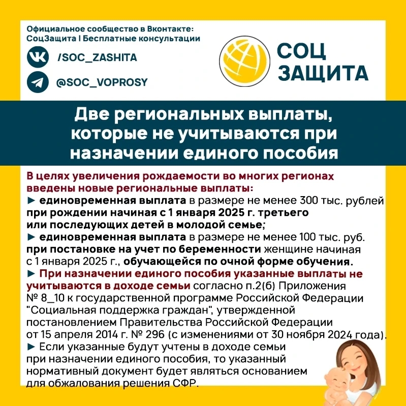 Какие две региональные выплаты не влияют на единое пособие? Подписаться https://max.ru/soc_zashita
