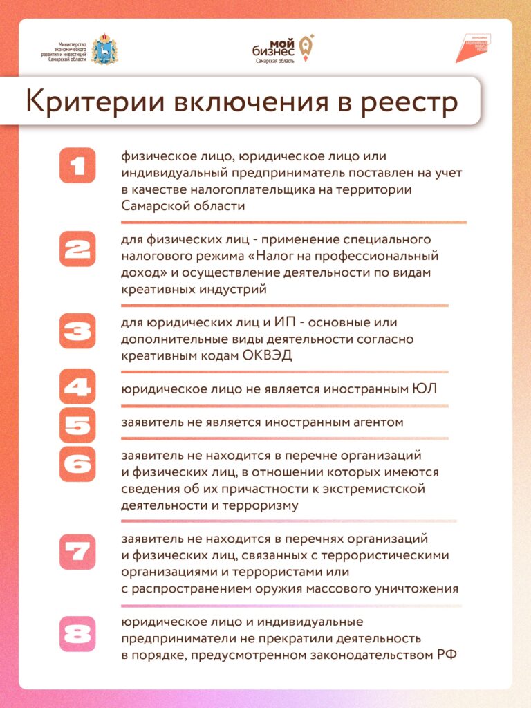 Если вы работаете в креативной сфере, самое время включиться в региональный реестр и получить доступ к дополнительным возможностям для развития бизнеса.